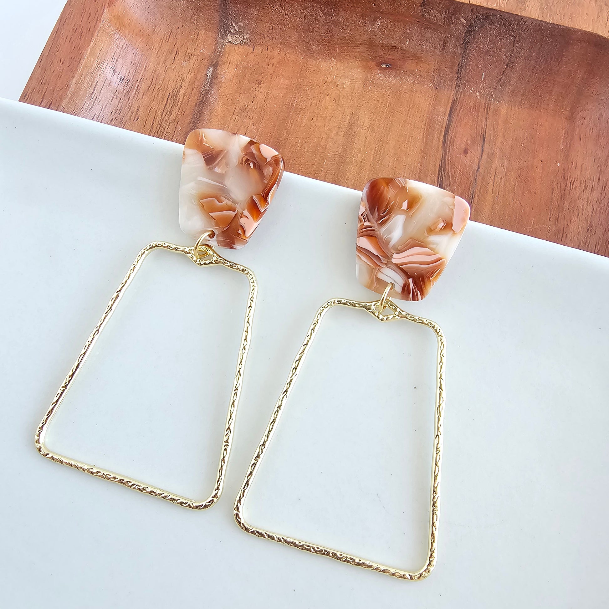 Be bold and make a statement with the Ariana Earrings in rust. These playful earrings feature a lightweight gold charm and acrylic accent posts, adding a touch of fun to any outfit. Who said statement jewelry had to be heavy? (Not us!)