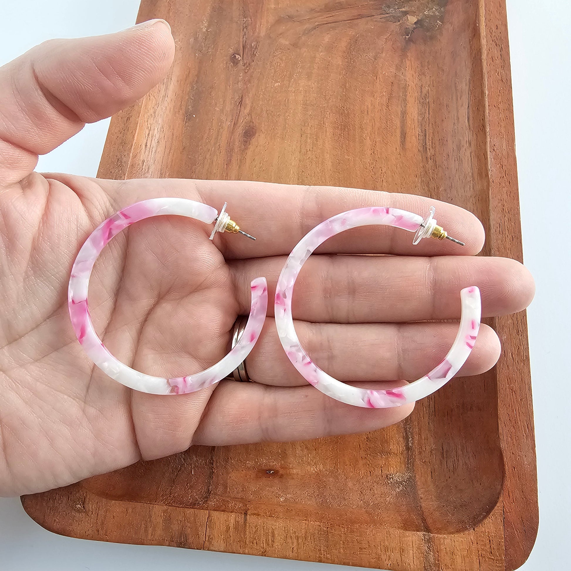 Cameron is our largest sized hoop. Our signature ultra lightweight acrylics in gorgeous colors make them the perfect go-to wardrobe staple.