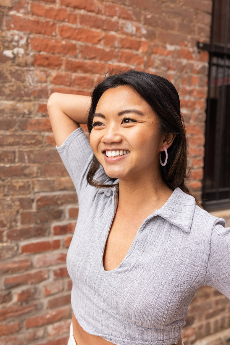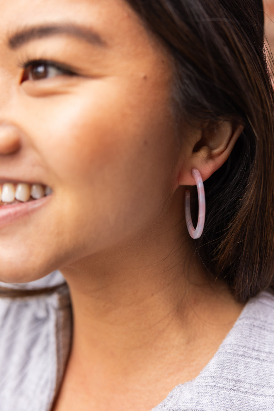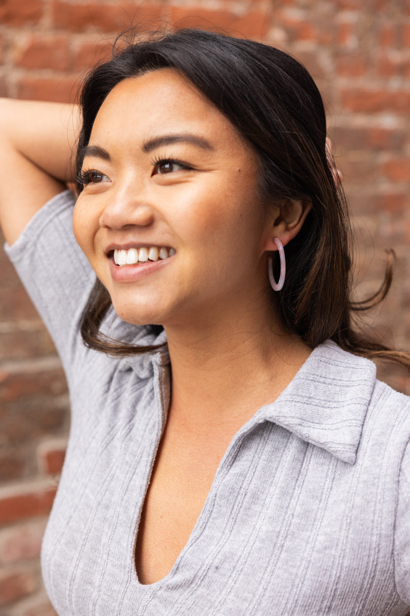 Camy is our medium sized hoop. Our signature ultra lightweight acrylics in gorgeous colors make them the perfect go-to wardrobe staple.
