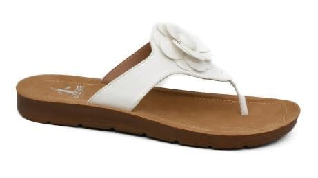 She features a lightweight flexible bottom. She is a twist on the traditional thong flip flops. Featuring a gorgeous flower design.