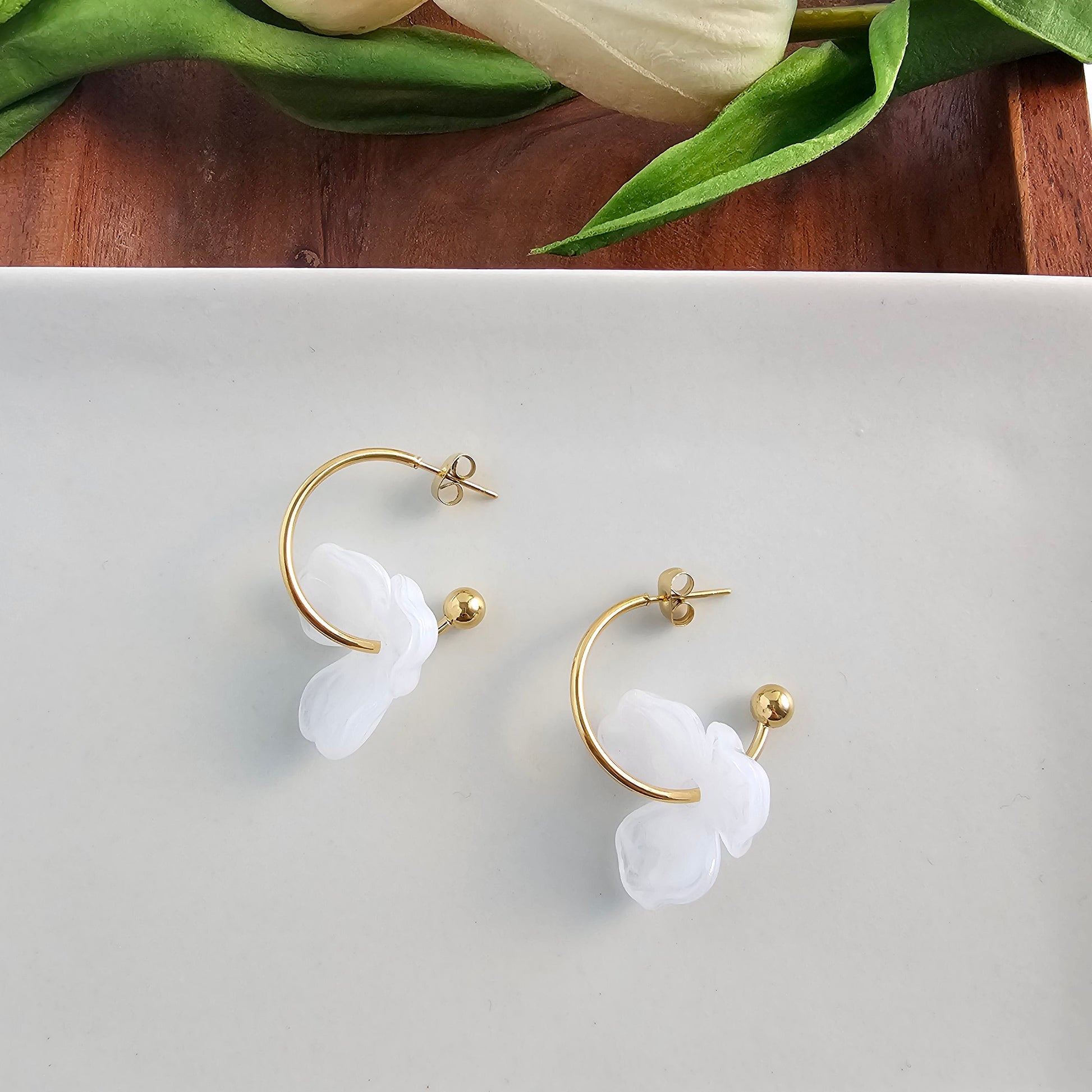 Add a fun twist to your hoop collection with our Magnolia Hoops in White! Featuring sleek gold hoops adorned with vibrant resin flowers, these earrings bring a playful pop of color to any look. Perfect for turning heads and brightening your style, they’re the ultimate accessory to stand out from the crowd. 🌸✨
