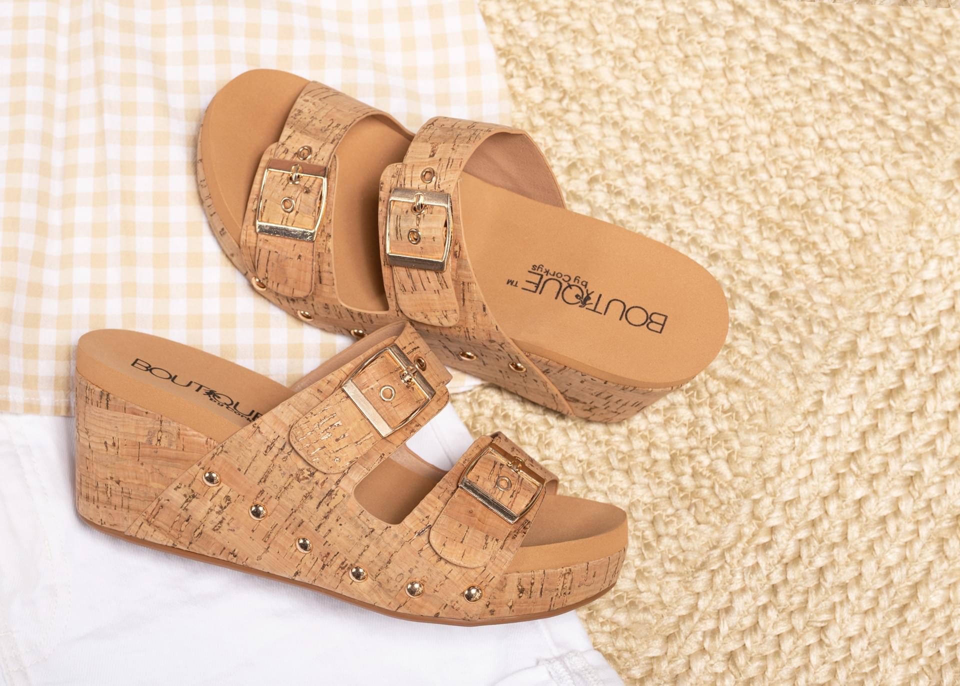 Adjustable straps. 2.75" wedge heel. True to size. If you are a half size round up. This is wide foot friendly.